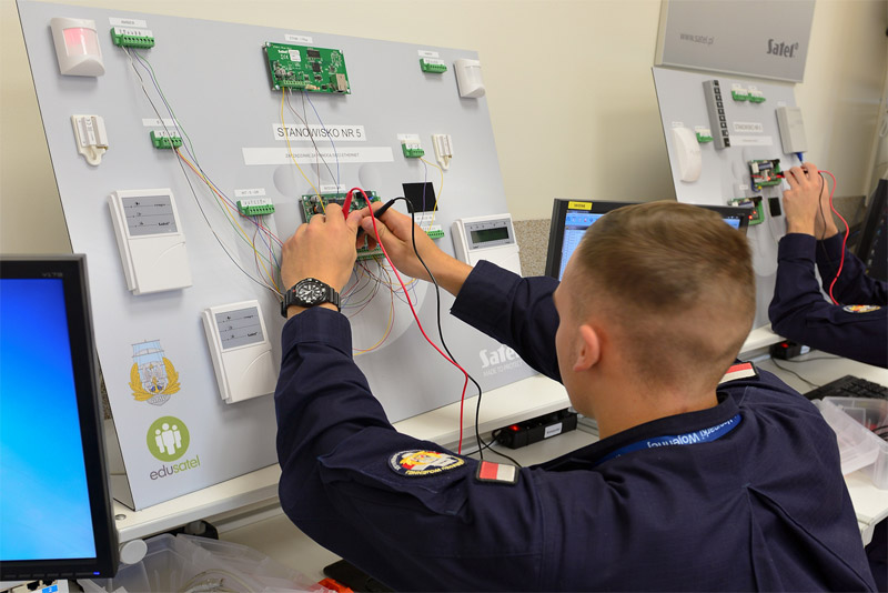W pracowni gdyńskiej uczelni mieści się osiem podwójnych stanowisk wyposażonych w najnowocześniejsze urządzenia firmy SATEL. Zapewnią one studentom optymalne warunki do poznawania, tworzenia oraz konfiguracji systemów sygnalizacji włamania i napadu, jak również systemów kontroli dostępu.